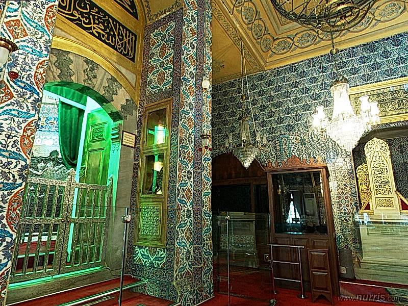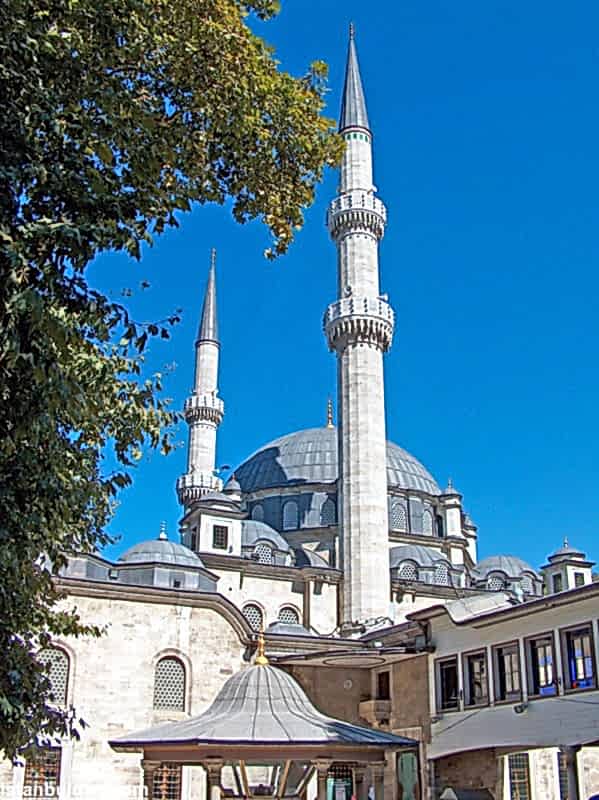 The mosque, which was highly damaged by 1766 Istanbul earthquake, was pulled down and rebuilt by the order of Selim III . The mosque, built upon the instructions of Uzun Hüsayin Ağa, was got ready to pray inside by Selim III. As Selim was Mevlevi (whirling dervish) there are Mevlevi sikkes ( species) on the bars of the yard, in which there are also a set and a grass holl. The silver chandeliers in the tomb, embellished with chinas in 16th century, belong to the latest period and the well at the nadir point of the coffin is supposed to be found out in the course of Akşemsettin’s spiritual estimate.There are cypresses and graves around the mosque.The graves of Necip Fazıl, Fevzi Çakmak, Ferhat Pasha, Mehmet Pasha, Ahmet Haşim, Savavuş Pasha, Ziya Osman Saba and Sokullu Mehmet Pasha create an ethereal atmosphere around the mosque.
